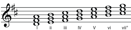 | D - F# - A | E - G - B | F# - A - C# | G - B - D | A - C# - E | B - D - F# | C# - E - G |